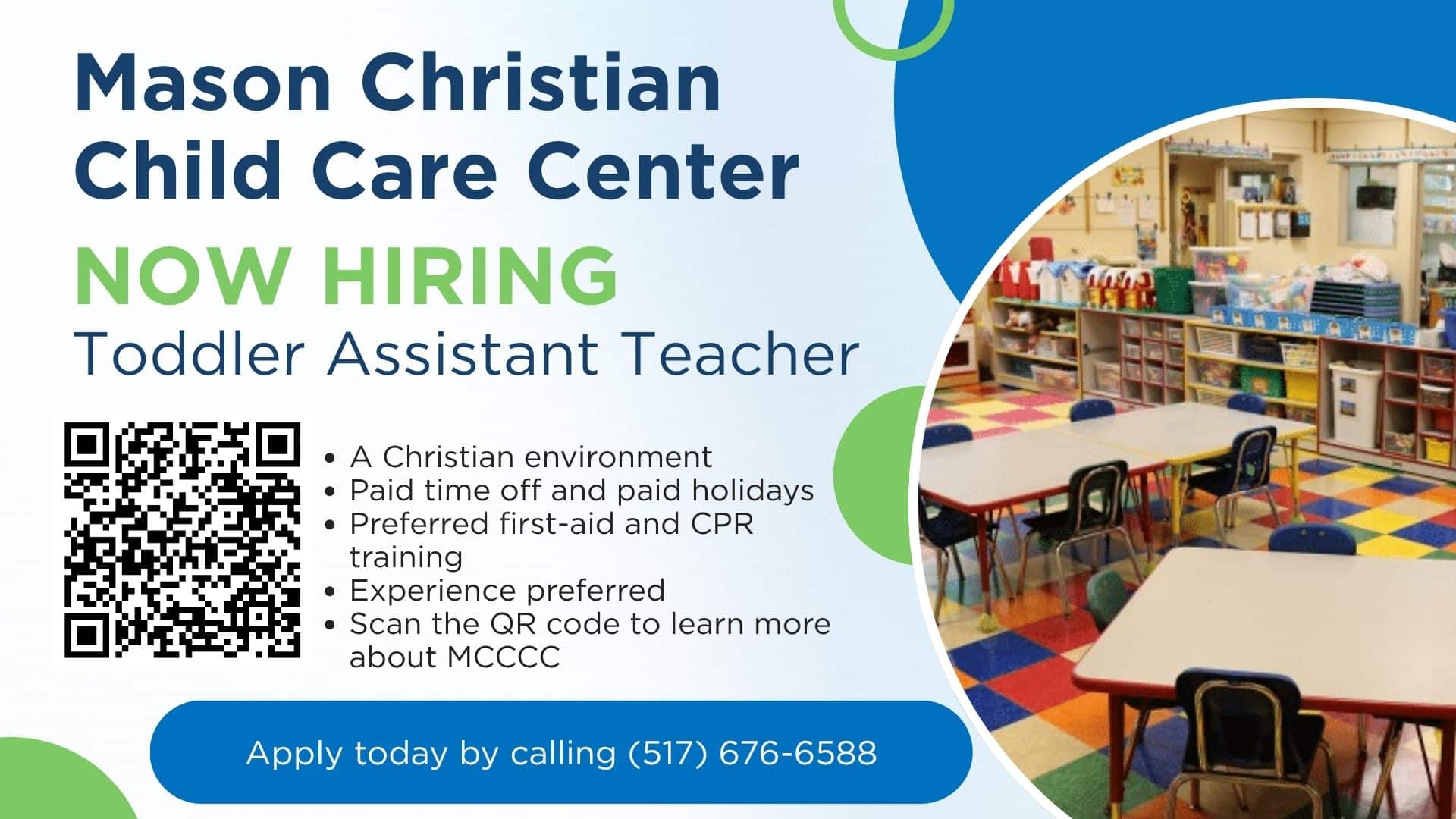 Exciting news: the Mason Christian Child Care Center (MCCCC) is hiring!